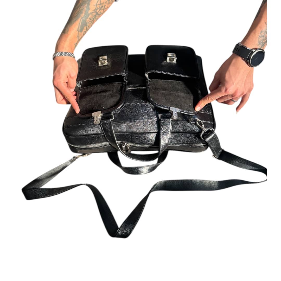 دارای یک بند چرمی و برزنتی قابل تنظیم و دسته تمام چرم جهت قرار گرفتن کیف بر روی دوش و دست می باشد