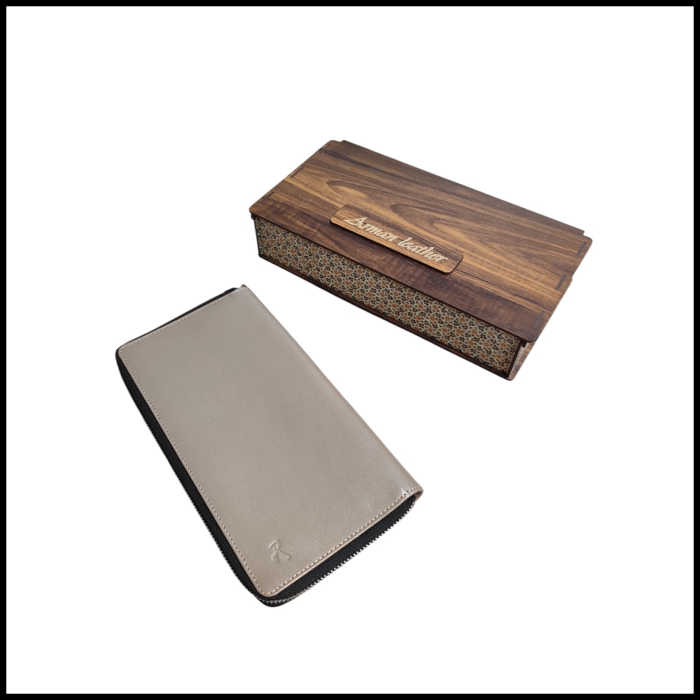 کیف دسته چکی مدل سامان تولید شده از چرم طبیعی گاوی می باشد