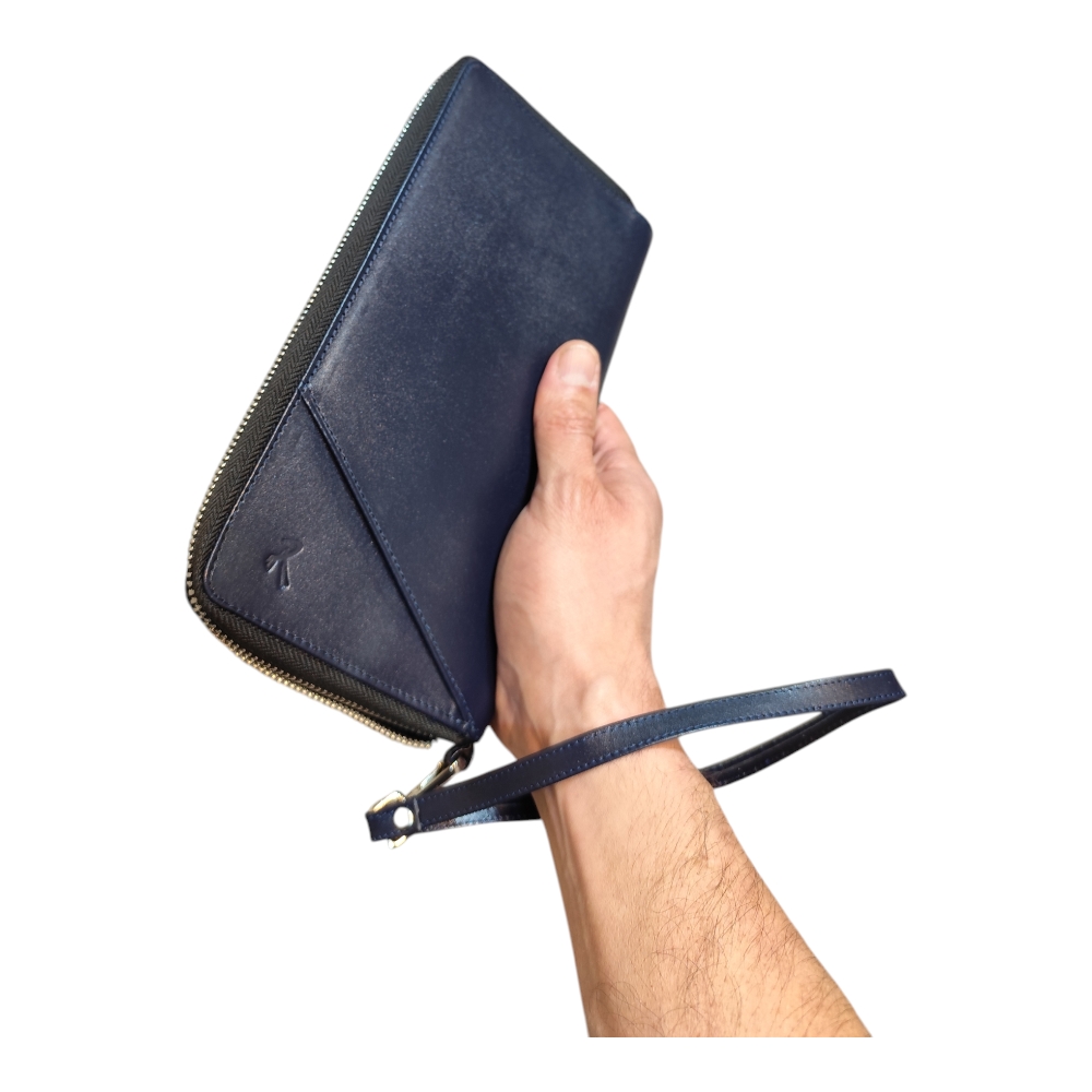 این کیف دارای یک بند چرمی کوتاه جهت قرار گرفتن در دور مچ دست است