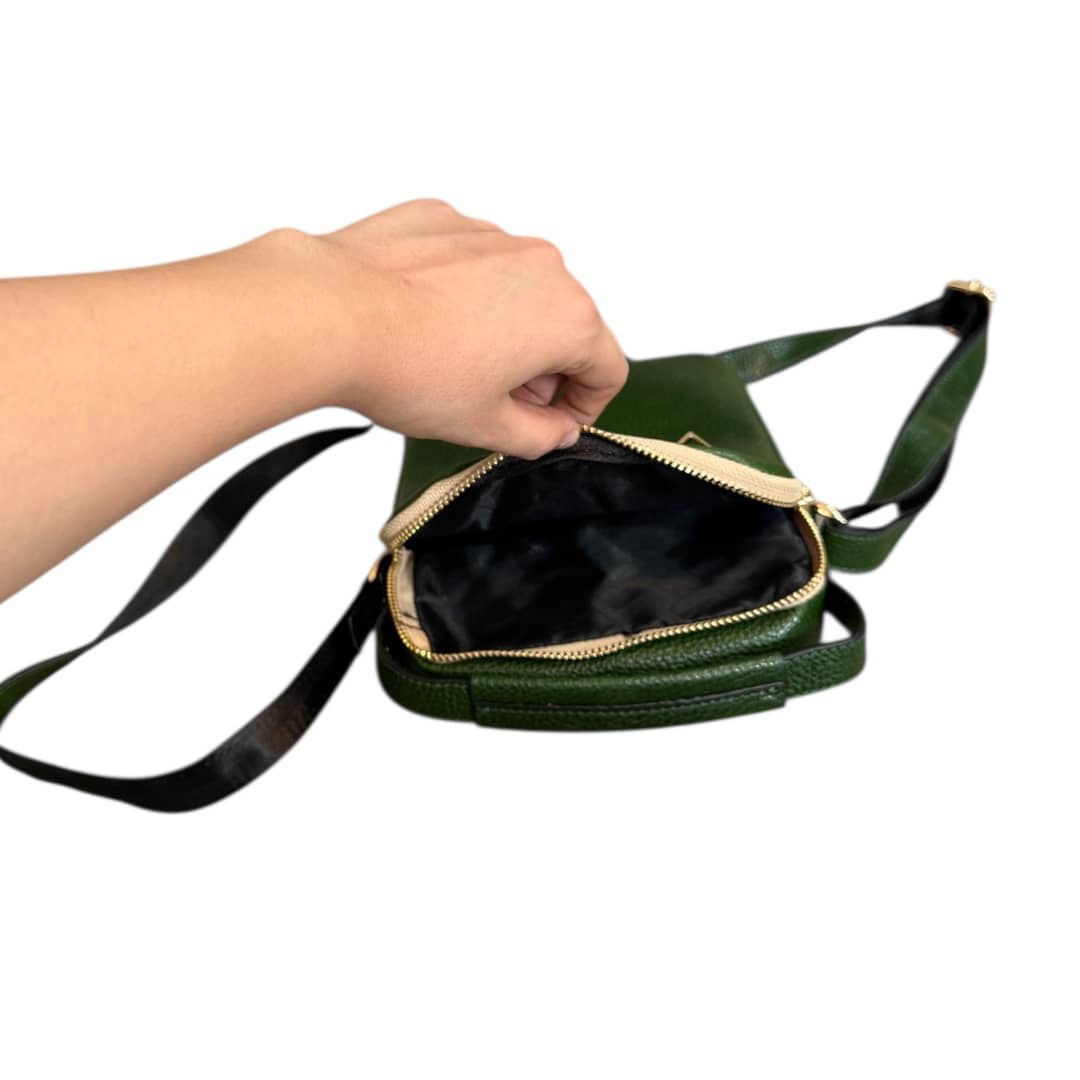 فضای داخلی این کیف 2 خانه زیپ دار بوده مناسب جهت قرار گرفتن تلفن همراه و پاور بانک و مدارک را دارا می باشد.جلوی کیف بصورت مگنتی باز میشود و یک جای کوچک جهت قرار گرفتن کارت ها و مدارک شما میباشد.