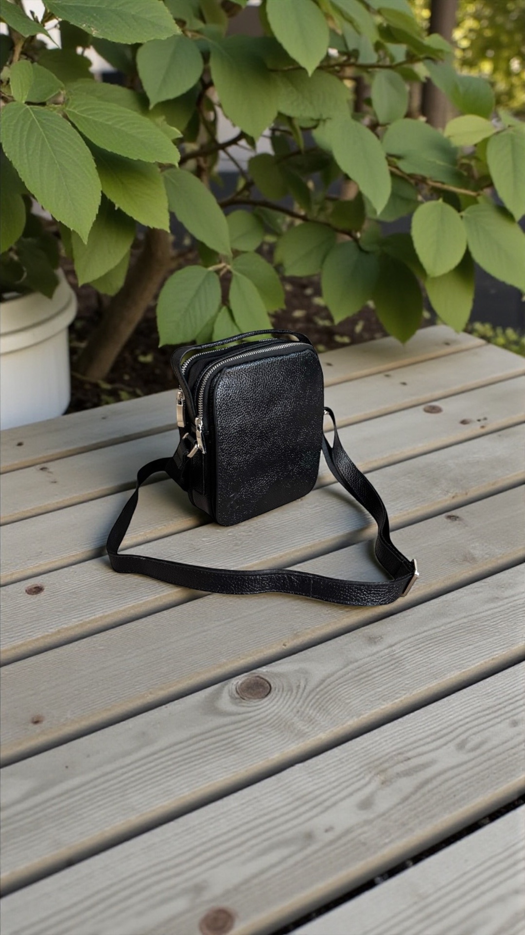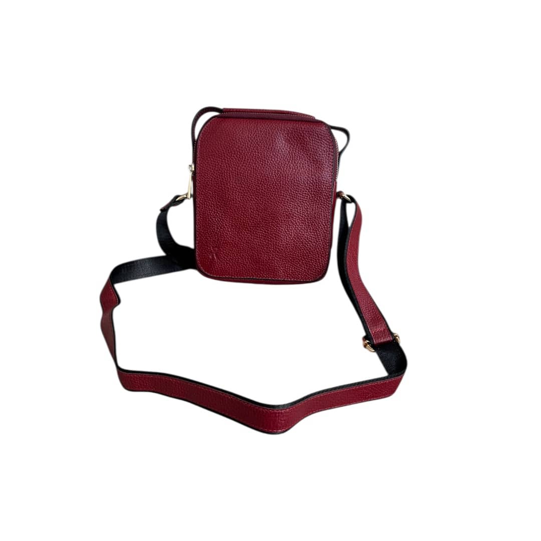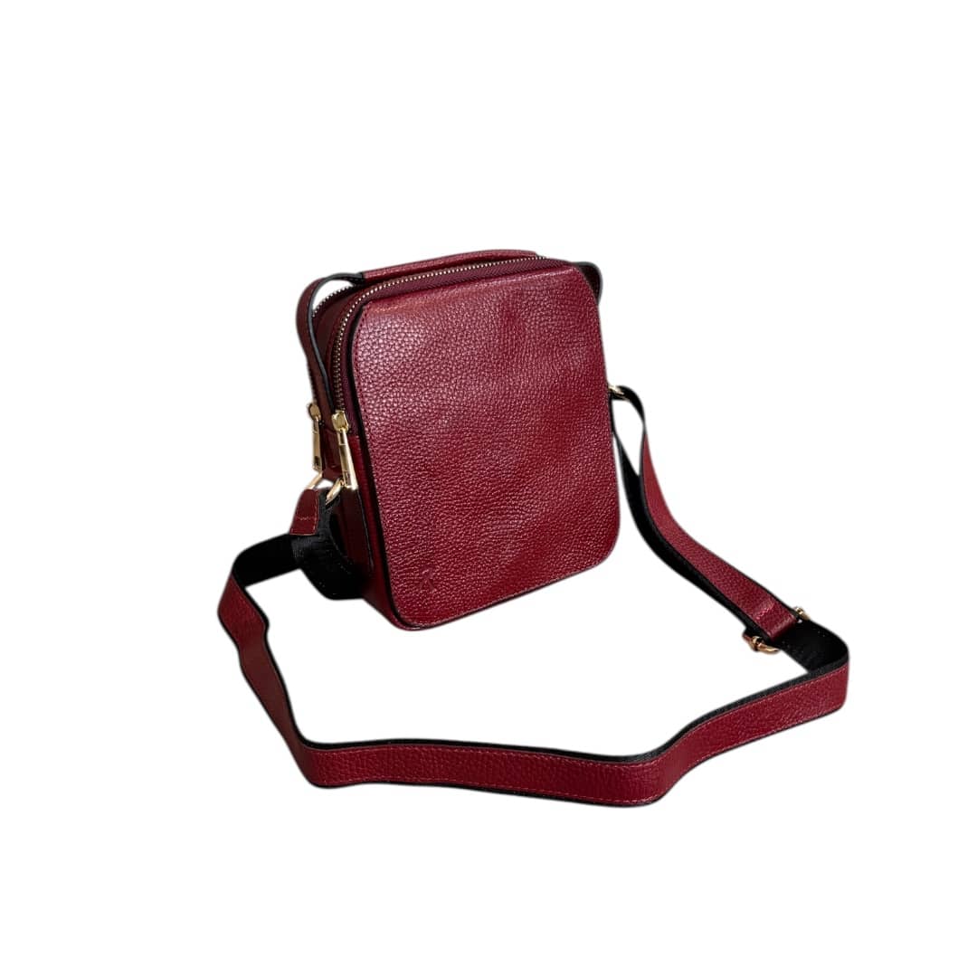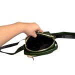 دارای یک دسته چرمی و بند قابل تنظیم جهت قرار گرفتن بر روی دوش را دارد